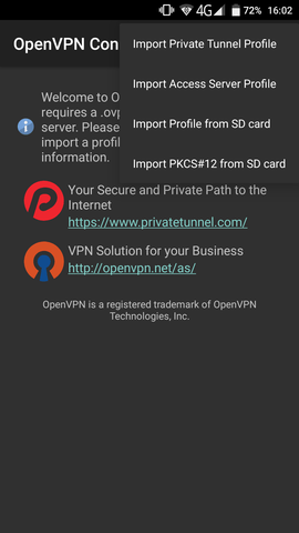 /root/android.ovpn) to your Android device (e.g. SD card) and import it in the app: